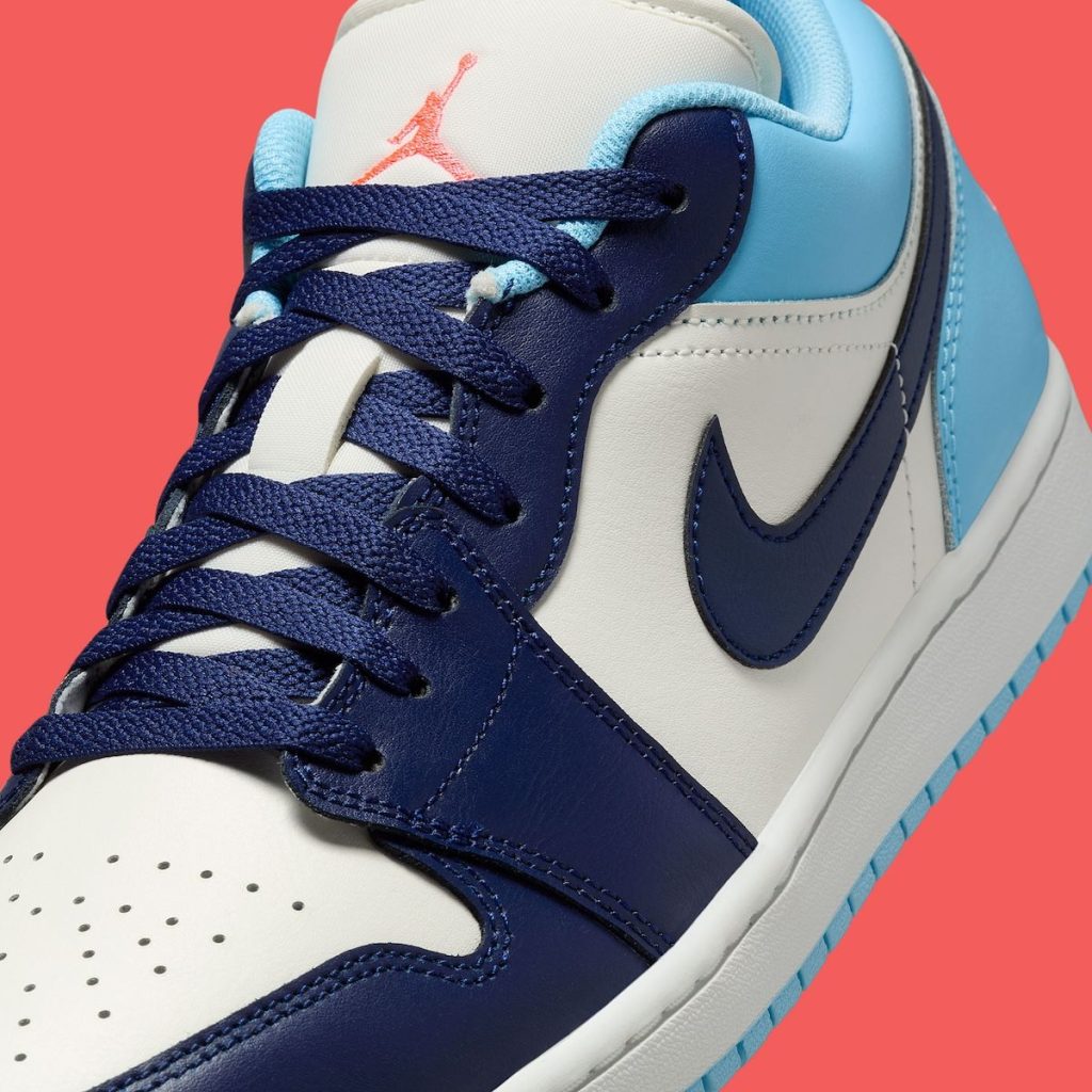 This iteration uses a high-quality leather upper typical of Jordan Brand’s Lows. As per Nike’s product page, the upper features “genuine leather … for durability and a premium look.”
