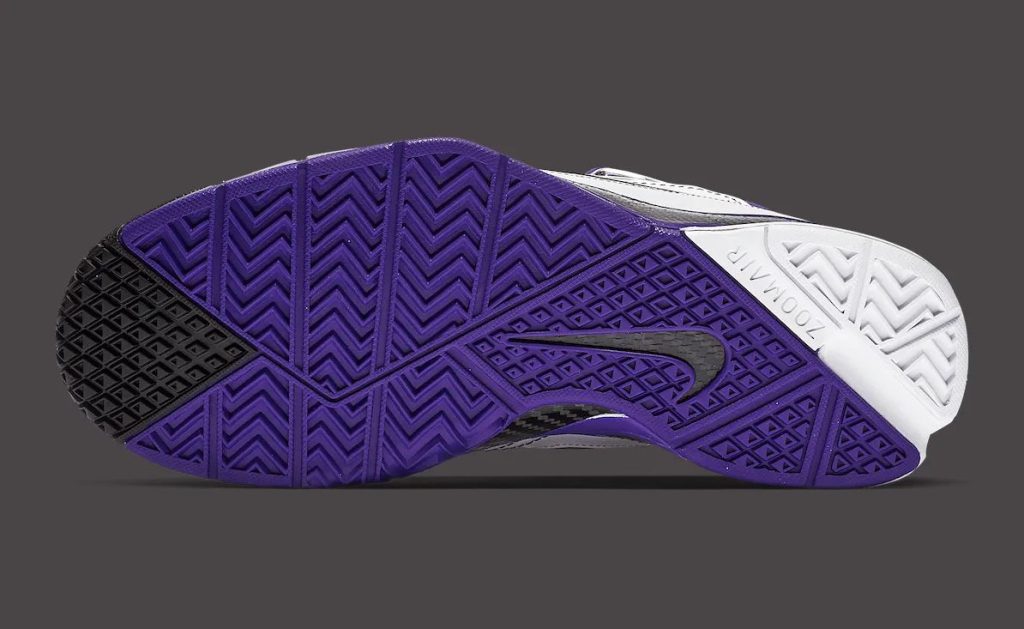Outsole: A purple- and black-rubber outsole completes the design, maintaining the classic look and on-court grip.